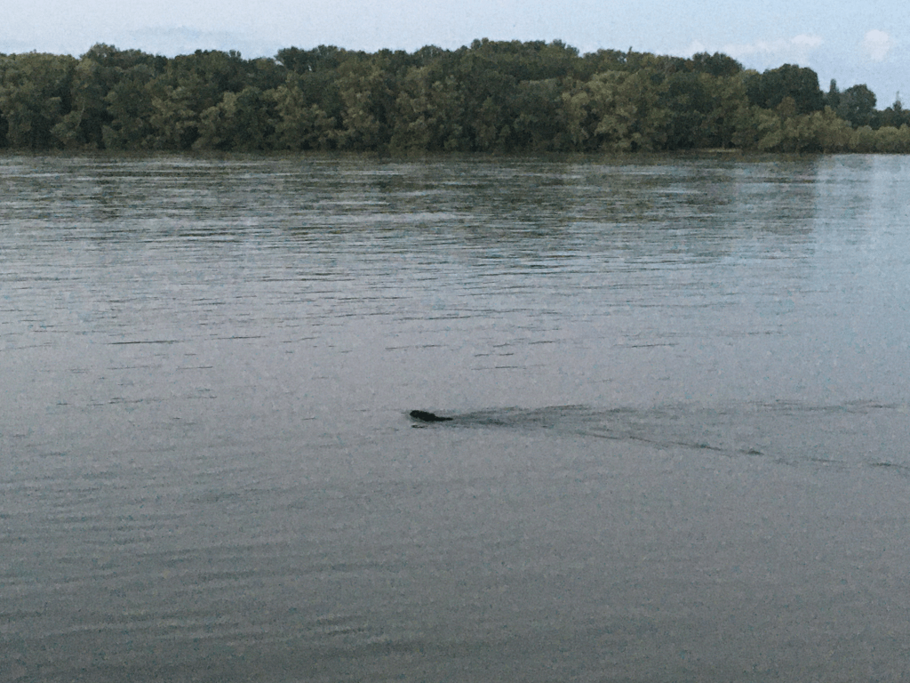 „Egyetlen egyedet lehetett észlelni 21 órakor. Lassan úszott, csak a fejét és a háta tetejét kidugva a vízből. A Római parton, a Fellini kultúrbisztró előtti partszakasznál, a kint ülő emberek szeme láttára úszott el és bukott a víz alá, kb. 10-15 métert haladva a már csendesebb részen.”