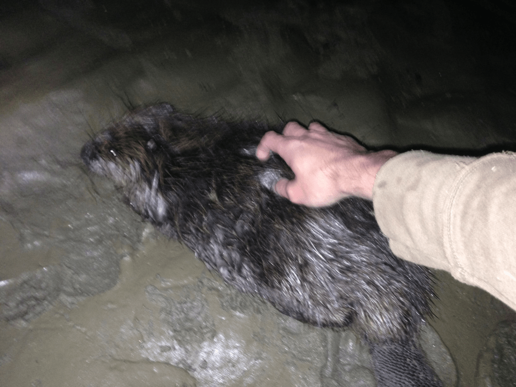 Az alábbi képen a hódkölyök kiszabadításának és elengedésének pillanata látható.