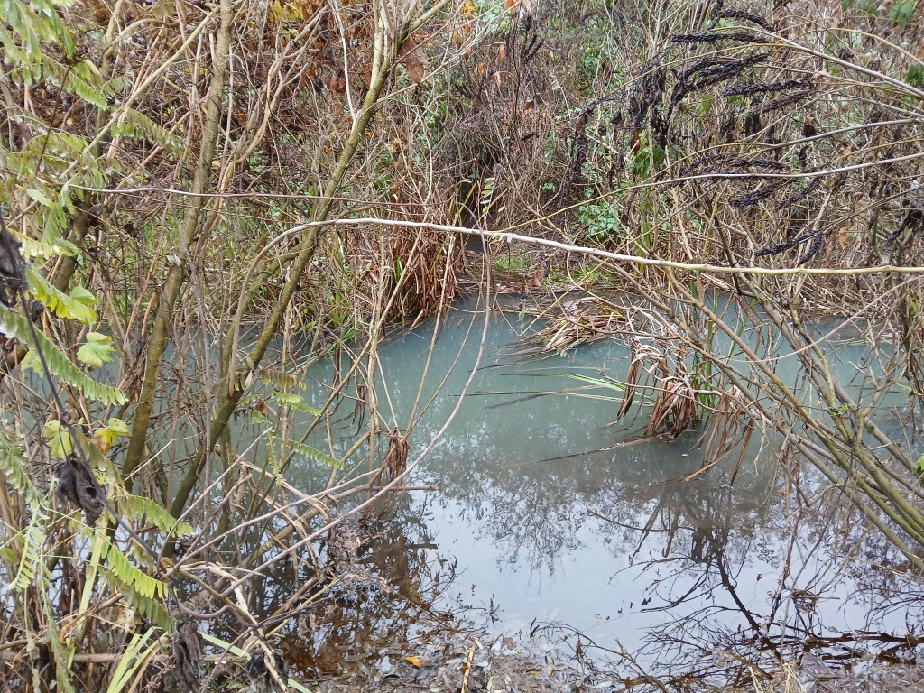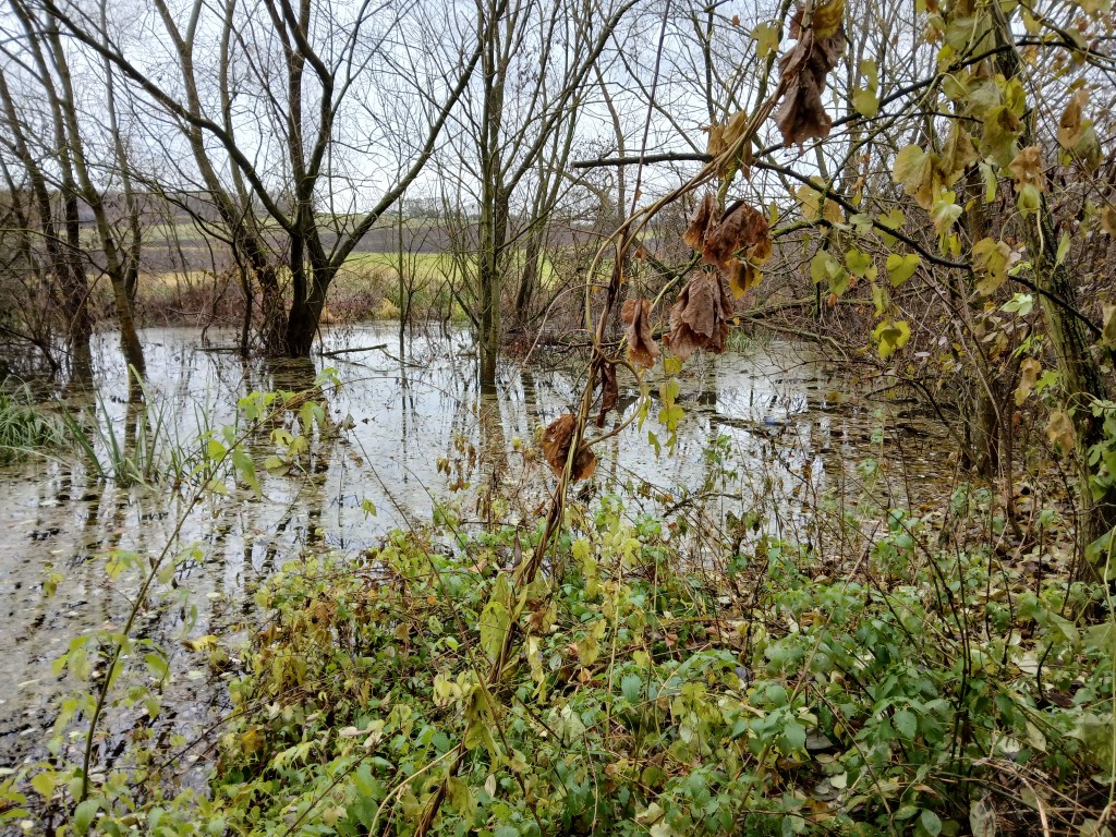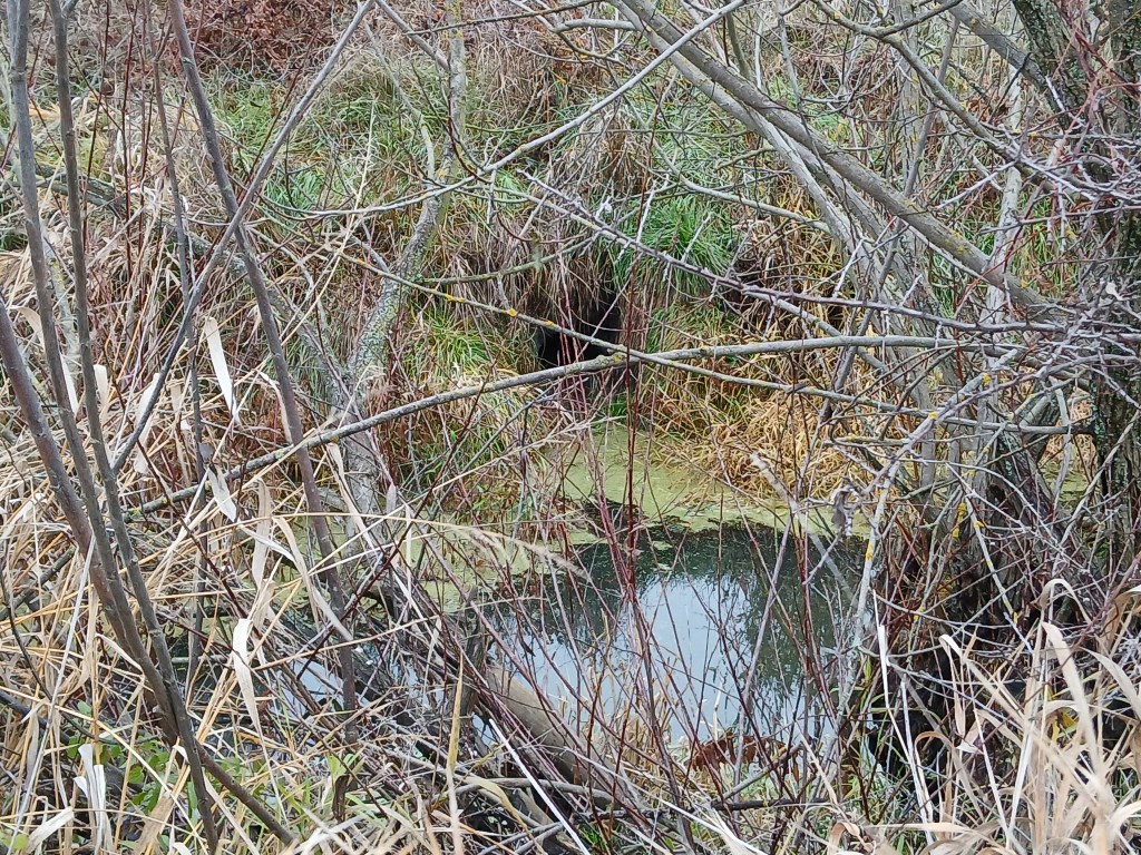 A hódmocsár enyhén emelkedő partján óvatos léptekkel kellett haladni, mindenhol süllyedős talaj és potenciális, vagy már beszakadt üregek vártak. Sajnos az illegálisan lerakott szemétkupac elhelyezésére még pont volt lehetősége valakinek. ☹