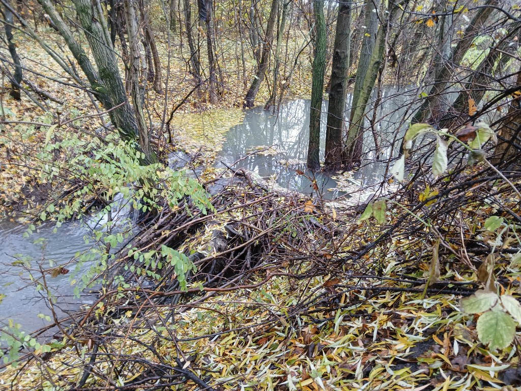 A Mezőkeresztest és Csincse települést összekötő útig tartó szakaszon gátat nem találtam. Az út túloldalán azonban már egy újabb gát felelt a vízduzzasztásért, és itt is rágásnyomok és üregek jelezték a terület foglaltságát.