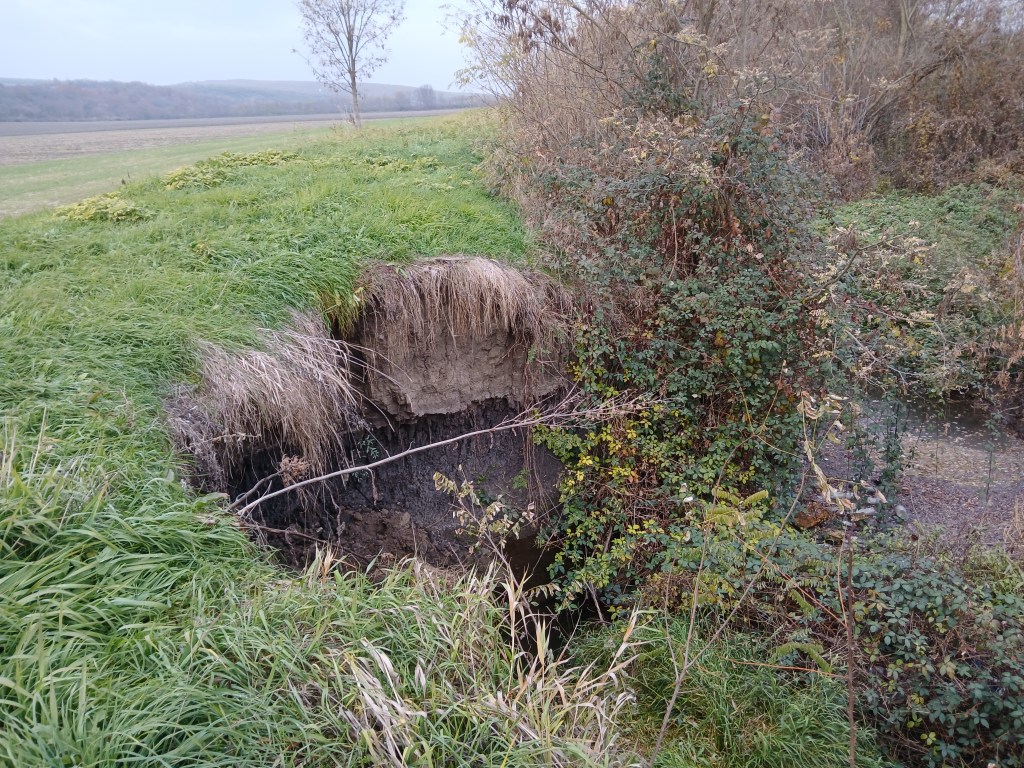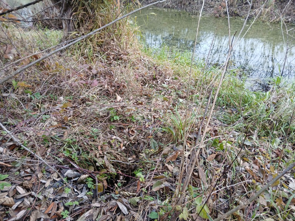 A település sűrűn beépített részén nem találtam hódra utaló nyomokat, az utolsó házakat elhagyva viszont rögtön újabb territóriumokat regisztráltam, kisebb-nagyobb gátakkal, várakkal, üregekkel.