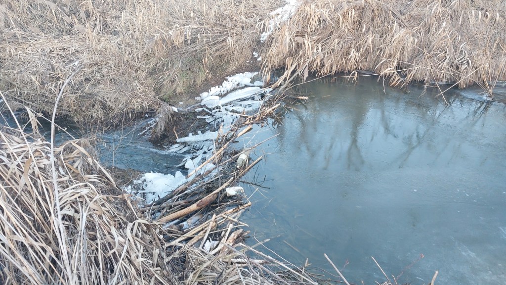 “A patak itt szűk mederben folyik, erősen bevágódva, a hódgát alatti részen esélytelen lemenni a víz mellé. A hódgát mögött, kb 350 méterig jelentős víztömeg van felduzzadva, mivel alacsony a vízfolyás esése. A szomszédos nádasok amúgy is vizenyősek, tavasszal sajnos sokszor tűzesetben érintettek, látszik majd, hogy emelkedett a talajvíz vagy sem, szerintem igen. Tényleg sok víz van a hódgát mögött.“