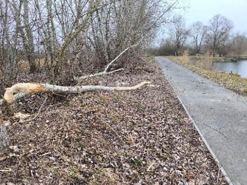 „Tóparti műtárgy, mint aszfaltozott gyalogút megsüllyedt a hód vár építésétől, illetve adott partszakasz beszakadása alacsony vízszintnél. A környéken gyakran magas a Mura miatt a talajvíz, és a csatornákon lakott területeket is látogatnak. Bányatavainkon mindenhol vannak partoldalba ásott kotorékok.”