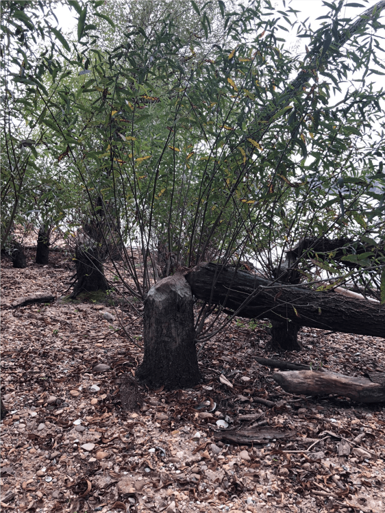 A szabadidőnkben sikeresen megtaláltuk a legközelebbi dunaparti hódterritóriumot, ahol kiválóan sarjadó hódrágta füzek sokaságát láthattuk.