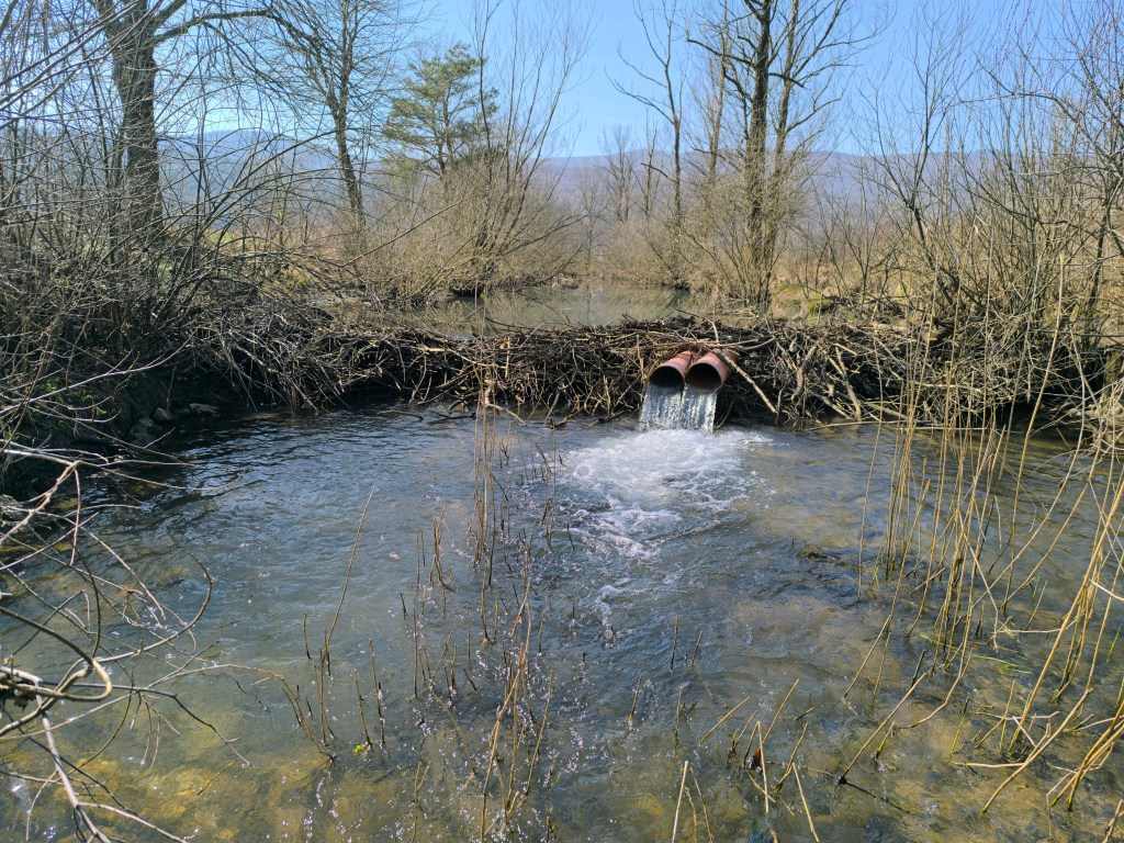 A Krka mentén vidra életnyomaival találkoztunk, majd hódnyomokat, hódvárat, hódcsatornákat detektáltunk. A folyóról továbbmentünk a Žerjavinski-patakra. A területen a hód általi duzzasztás miatt a víz korábban megtalálta a régi medrét. 2021-ben a vízügy cső átvezetést épített be, ami másfél évig működött. A cső túl alacsonyan volt a mederben, eltömődött és ezt nem pucolták ki, ami közrejátszhatott a szerkezet szétmosódában. Az alvízi oldalon volt egy szükségtelen fémkosár, ami fokozhatta az eltömítődés kockázatát. Fontos tehát, hogy a csőátvezetéseket szakszerűen készítsük el és az állapotukat félévente monitorozzuk.