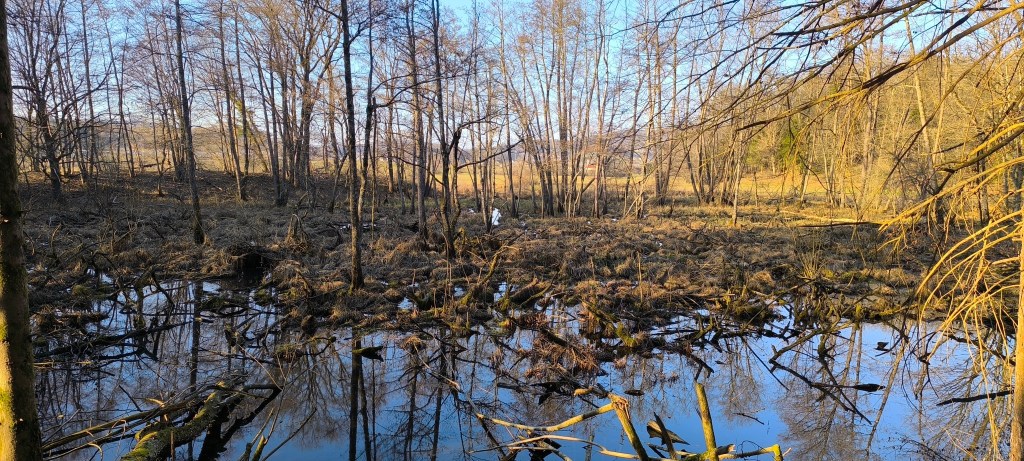 Az elmosódott gát alatt egy 110 centiméter duzzasztási szintű új gát található. Ami azonban még érdekesebb megfigyelés volt, az egy újonnan megfigyelt mocsár. Úgy véltük, hogy ez a mocsár a patakon átvezető gázló megsüllyedése, annak duzzasztó hatása miatt keletkezett. A mocsarat megkerülve azonban izgalmas felfedezést tettünk. Ezt a mocsarat a hódok hozták létre. Följebb a patakon találtunk egy 40 cm magas duzzasztási szintű gátat, ami felülről árasztotta el a területet. A mocsárban hódcsatornákat, körülötte pedig az erdőben rágásokat figyeltünk meg. A hód az erdőben tölgyet, bükköt, erdei fenyőt és gyertyánt is rágott.